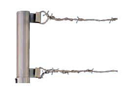 Stacheldrahthalter Zur Befestigung von zwei Reihen Stacheldraht auf Zaunelementen. |